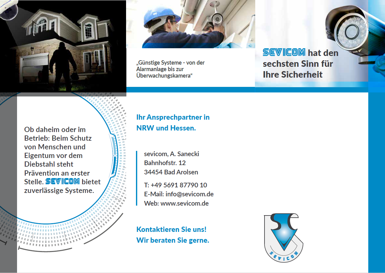 Hallo! Hier kommt ein neues Projekt 2020, ein neues Gesicht für Portal der Firma SeViCom. In Kürze finden Sie Hier Informationen, Service für Videoüberwachung und Alarmsysteme.